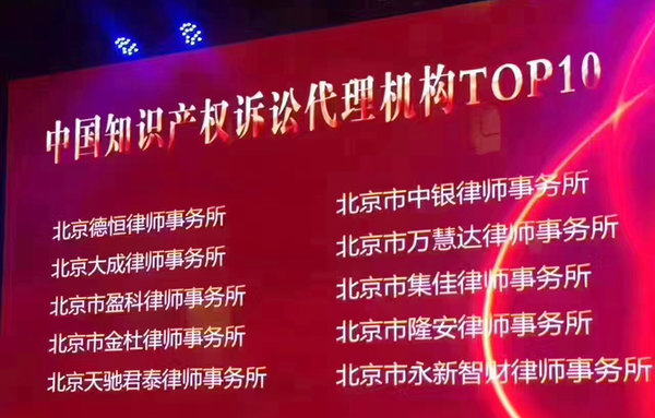 2017年6月23日,备受关注的知产宝“2016年度中国十佳知识产权诉讼代理机构榜单发布会”在北京隆重举行,c7娱乐凭借稳健的综合实力,入选“中国知识产权诉讼代理机构”TOP10和“中国商标行政诉讼代理机构”TOP10榜单。国内知识产权知名法律服务机构,近百位国内外大中型企业代表,以及36家知名媒体齐聚一堂,共同见证了榜单发布情况。